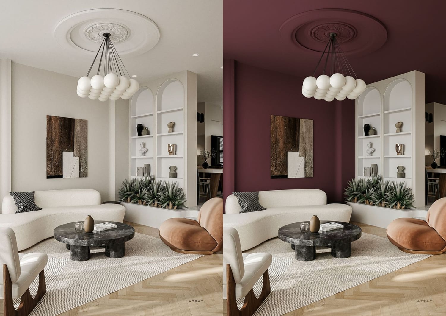 Gardez votre architecture, changez uniquement le mobilier, les luminaires et quelques détails d’ambiance.